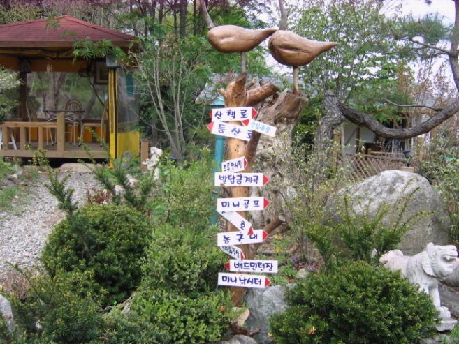 이쪽으로 가면 동물원도 아닌데 다양한 새들이 있고, 저쩍으로 가면 가볍게 발을 담굴 수 있는 곳이 있지만.. 날씨가 추워서 구경만 해도 좋고 배드민턴 장에서 배드민턴도 해보고 미니 골프연습장에선 돌아가면서 골프도 쳐보고 등산로 겸 산책로를 올라가려니 강아지가 먼저 올라가면서 길 안내도 해주고 다 올라온 것 같아서 잠시 쉬었더니 어느샌지 내려가버려서 아래서 멍멍 거리는 등 미리 말해버리면 다른 사람들은 찾는 재미가 없으니까.. 이정도로 하죠 전체적으로 신경쓴 흔적이 가득해서 살짝 감동이었어요 ^.^